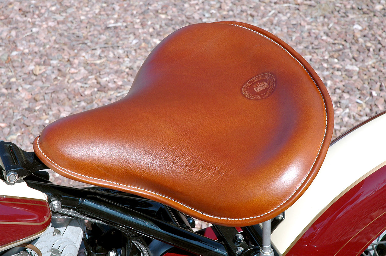 Important: If you are considering saddlebags for your bike, it is advisable to order your seat and saddlebags at the same time to ensure that the same batch of leather is used so they both match (especially tan). We do keep some of the most popular styles of seats in stock however most seats are specially handcrafted for you after your order is placed. Please allow several weeks lead time.